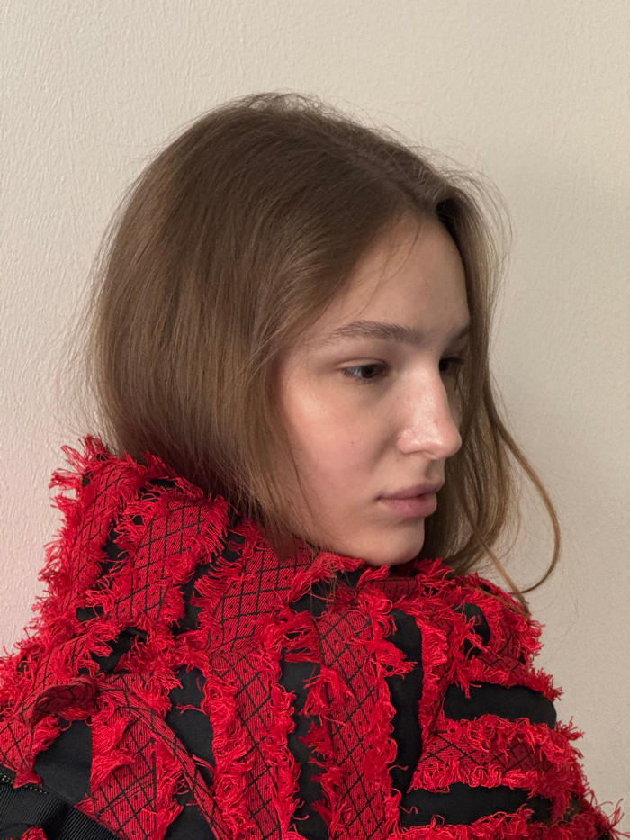 A young female individual is depicted in a medium-shot portrait, positioned indoors against a plain, light-toned wall. The specific location within the city of Milan, Italy, cannot be determined fromβ¦read more