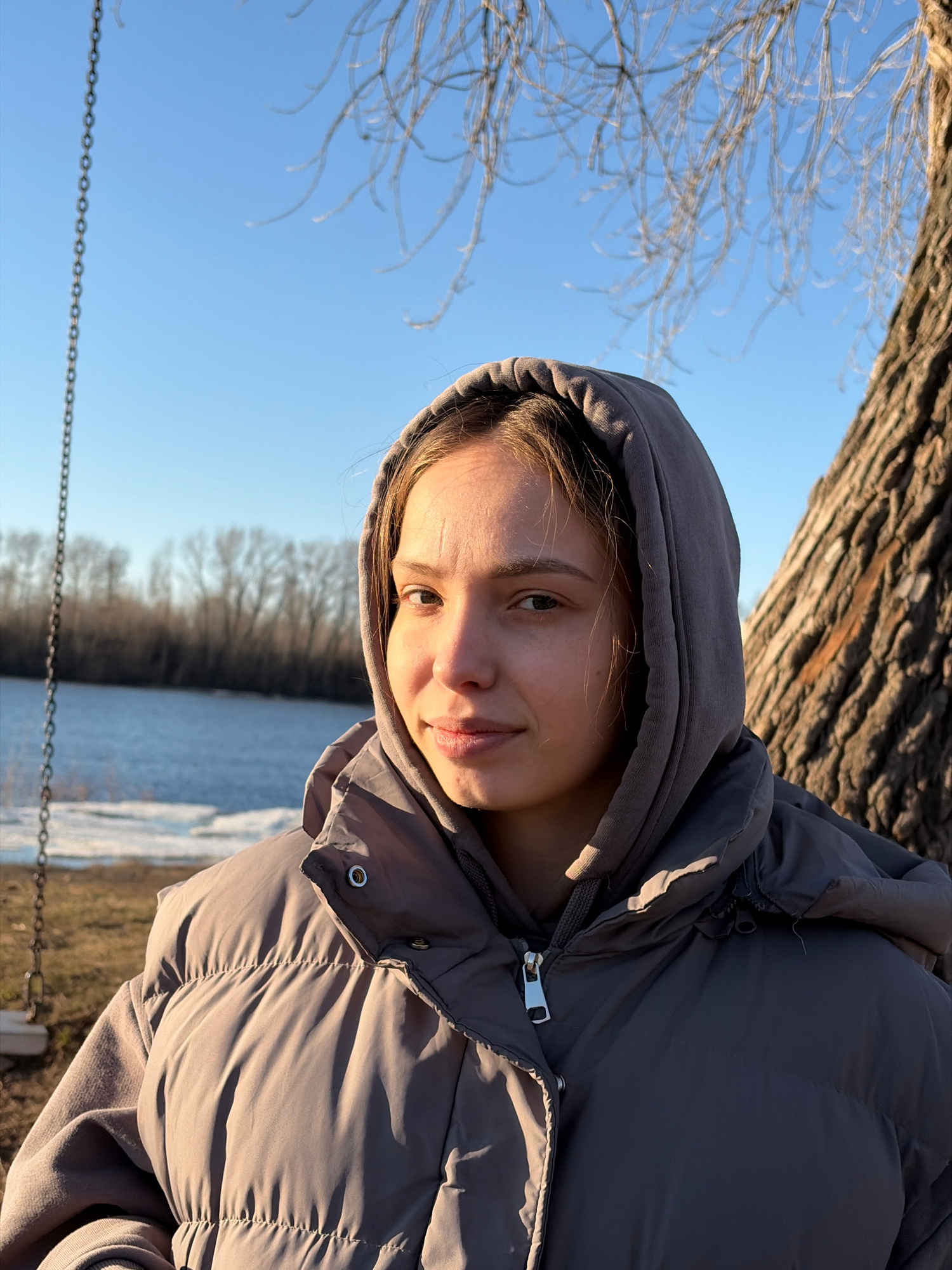 A person wearing a hooded puffer jacket is pictured against the backdrop of the Kama Reservoir in Chaikovsky, Russia. Bare tree branches are visible in the upper left of the frame, and a tree trunk is…read more