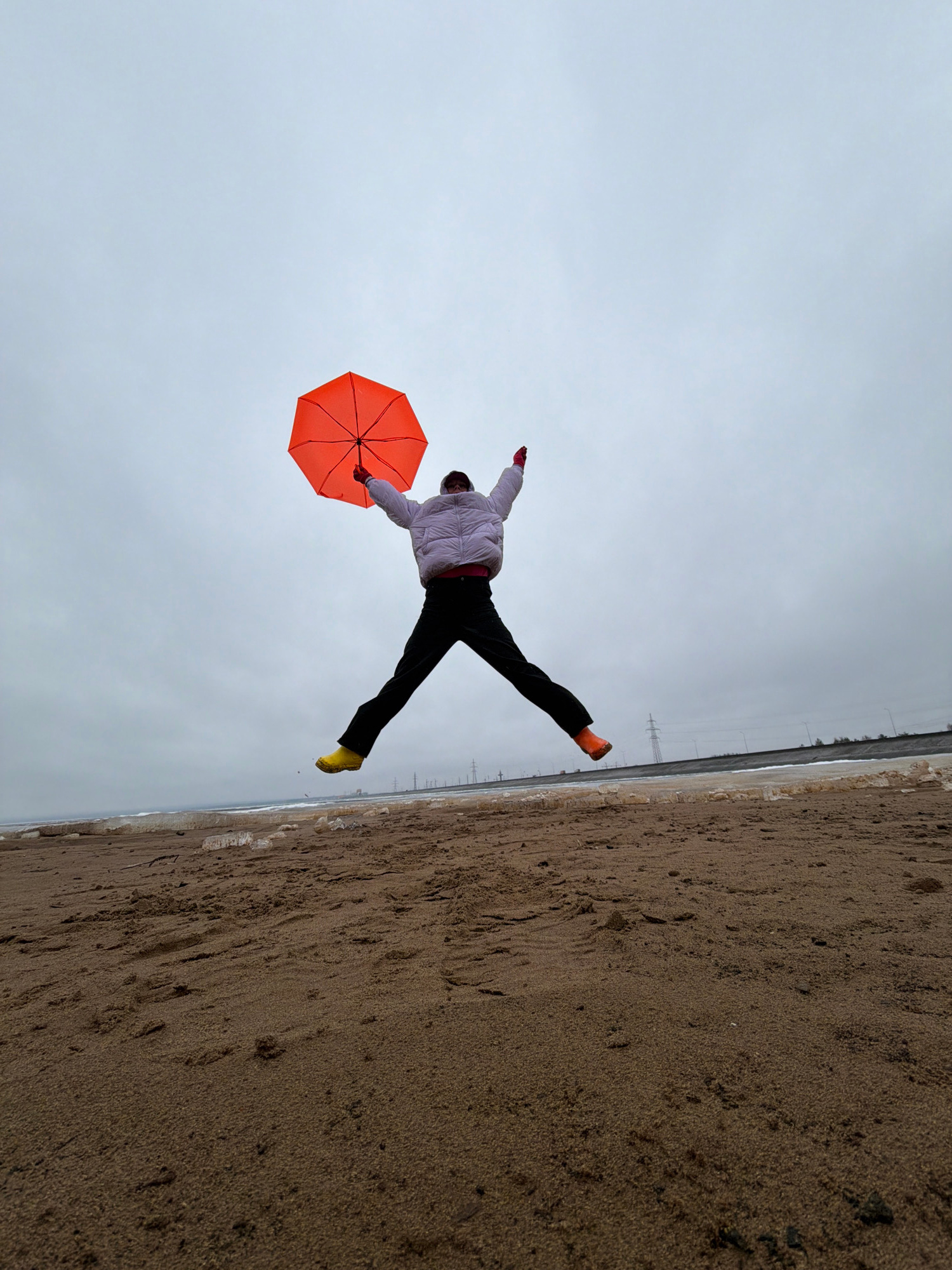 An image, rotated ninety degrees clockwise from its intended orientation, captures a person mid-air against an overcast sky and sandy terrain. The main subject is an individual, positioned horizontallβ¦read more