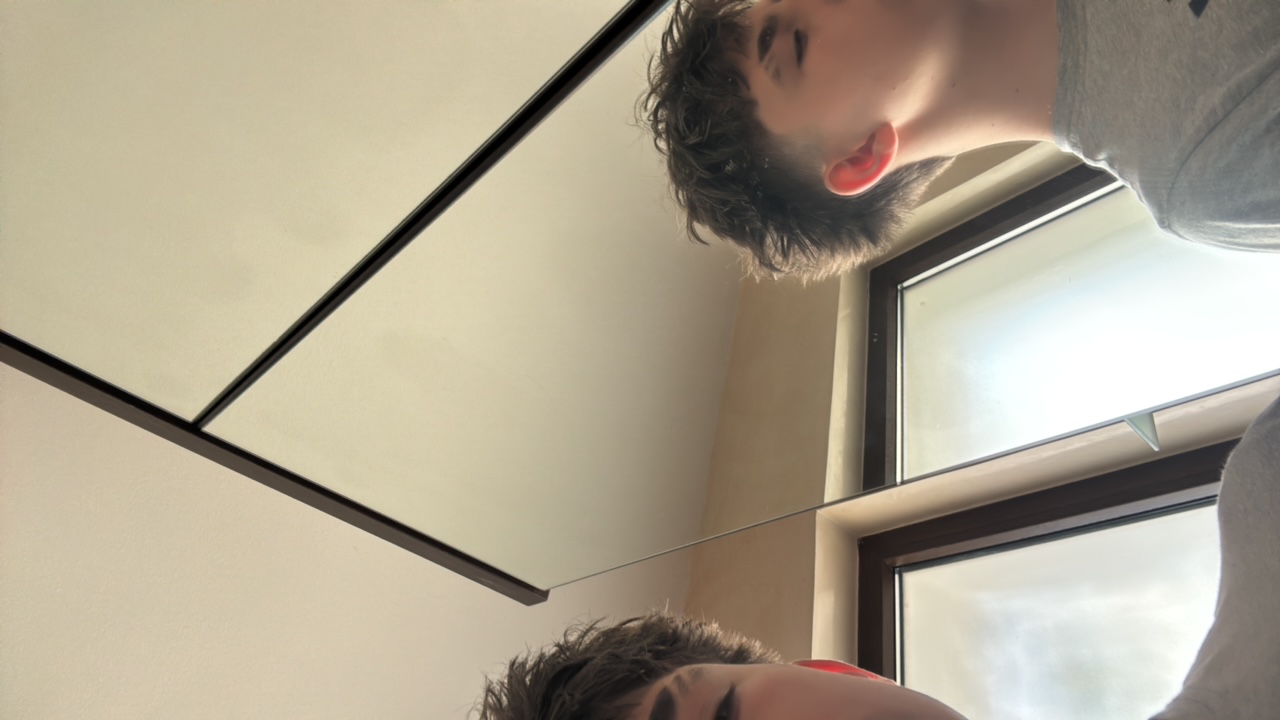A person wearing a white t-shirt and a gray puffer jacket is standing on what appears to be a sidewalk or paved area. The person is facing towards the right side of the frame and an AirPod is visible…read more