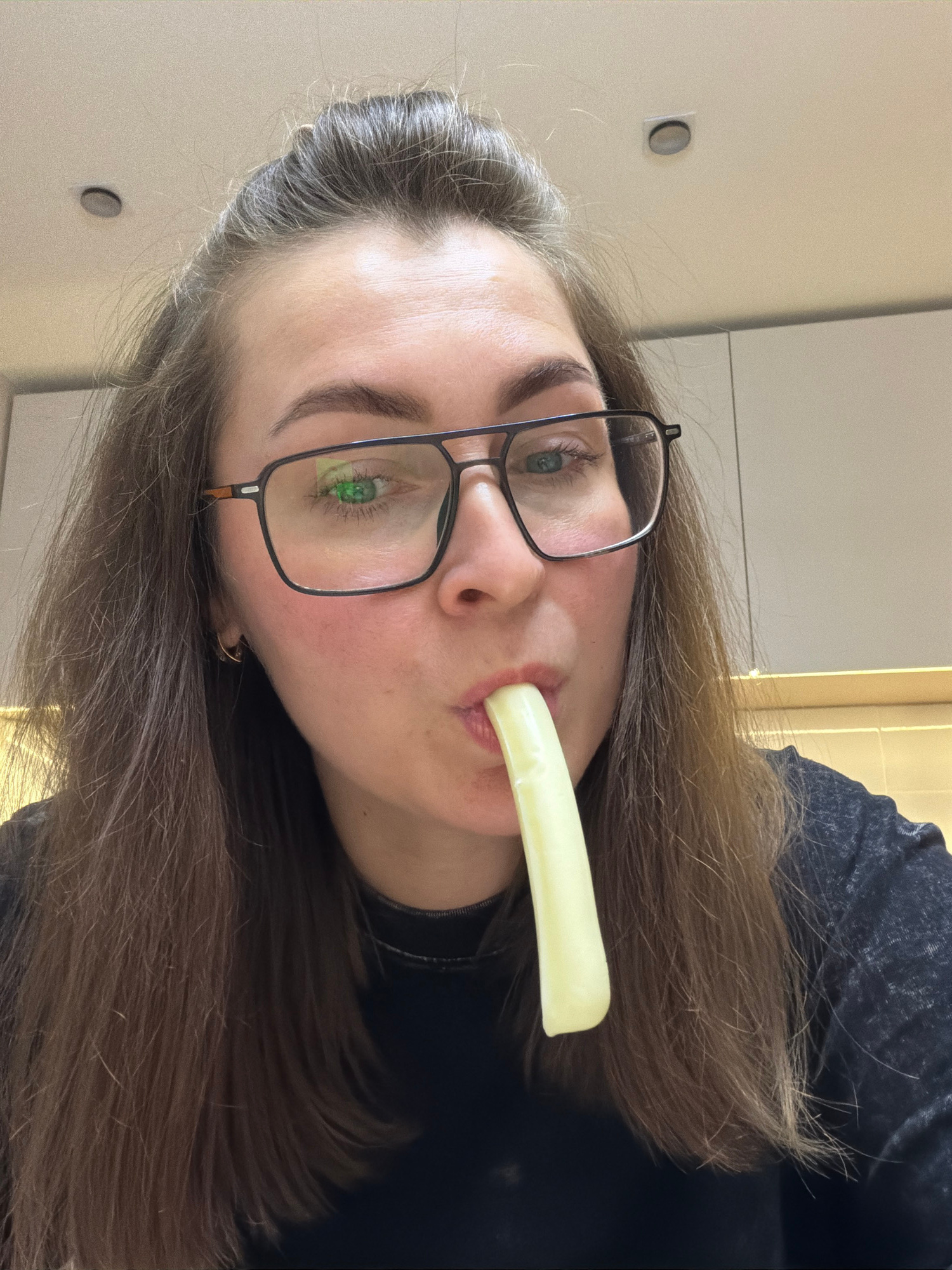 The image depicts a close-up portrait of an adult female located in Dubovaya, Russia, within what appears to be a modern kitchen or utility room. The subject has long, dark brown hair and is wearing d…read more