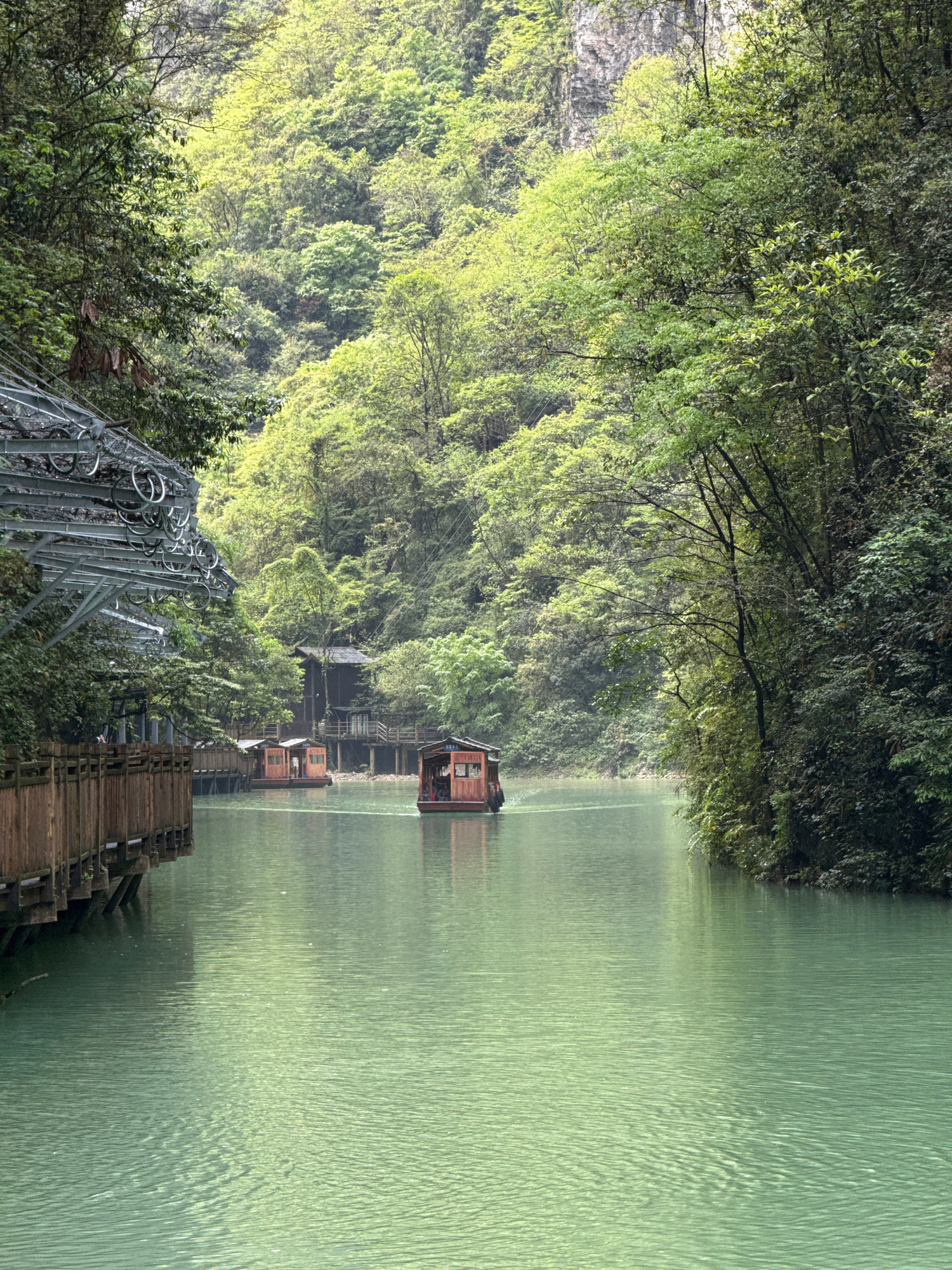 The image shows a body of water, likely a river or lake, situated in a forested area. On the edge of the water, there are several small, wooden structures resembling houses or cabins, possibly built o…read more