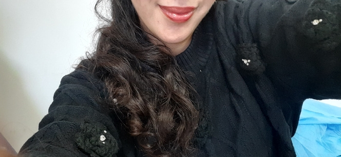 This close-up image, taken in an unknown indoor location in Meknes, Morocco, features the upper torso and lower face of an individual, likely female, captured from a slightly upward angle. The subject…read more