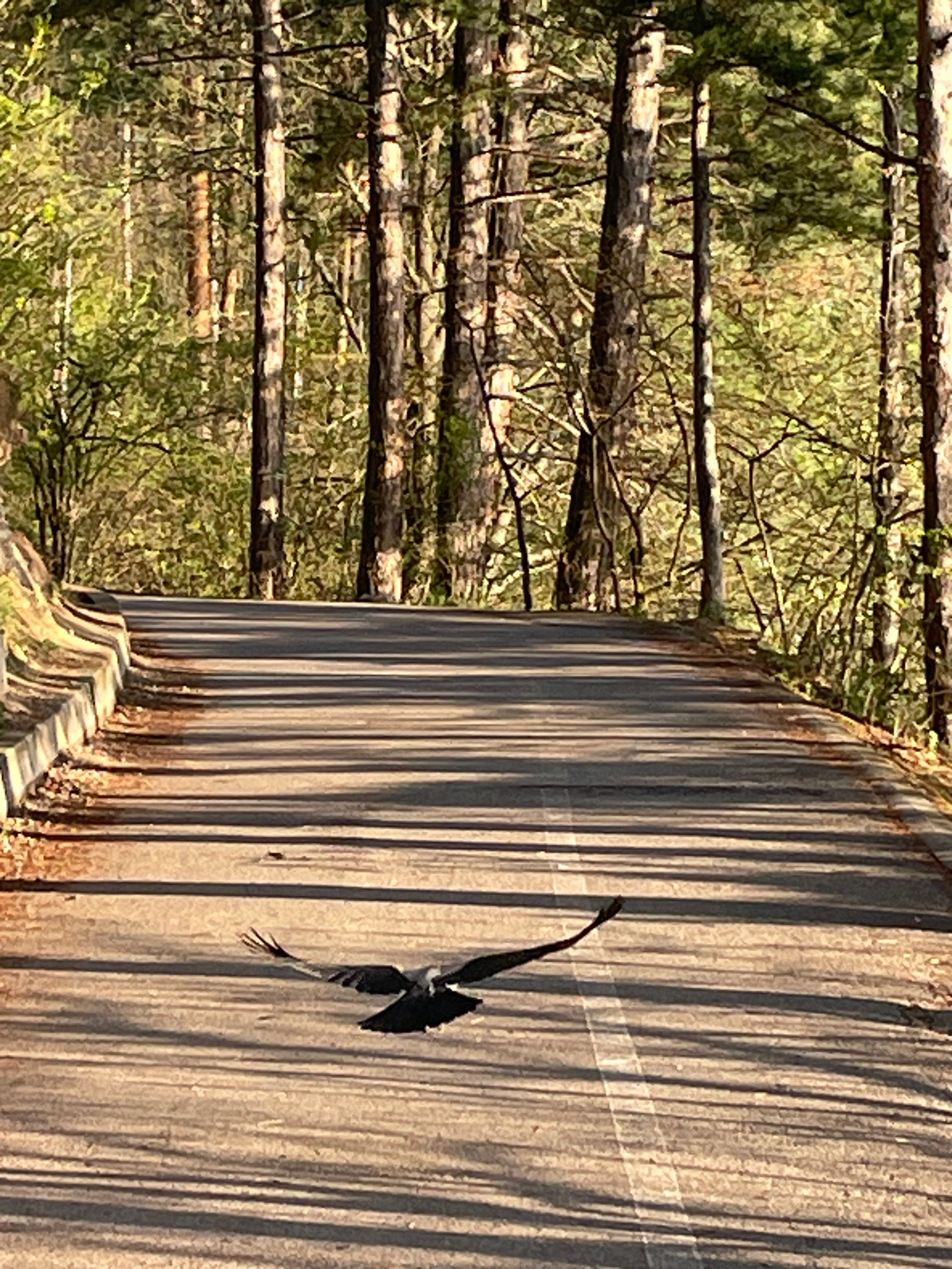 A bird is perched on a corrugated metal wall. The wall is bordered by vegetation on the left. The image is located in Pancharevo, Bulgaria.
