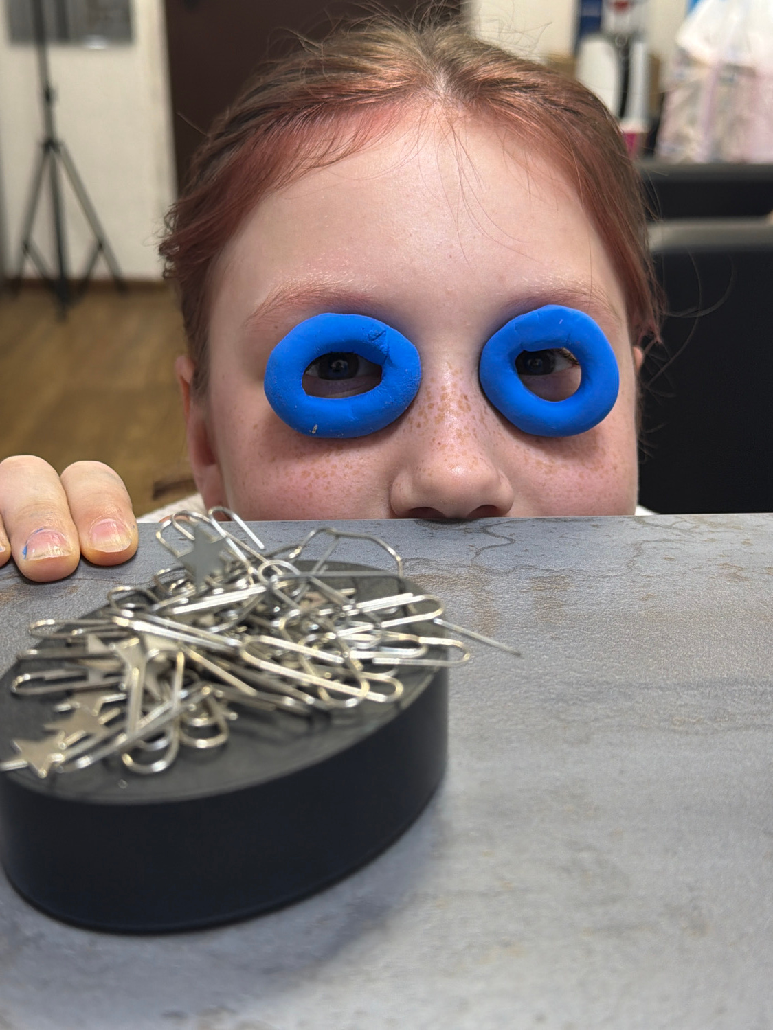 The image is rotated 90 degrees clockwise, presenting a close-up, surreal portrait of a person peeking over an edge, seemingly upside down relative to the image frame. The subject has fair skin with vā¦read more