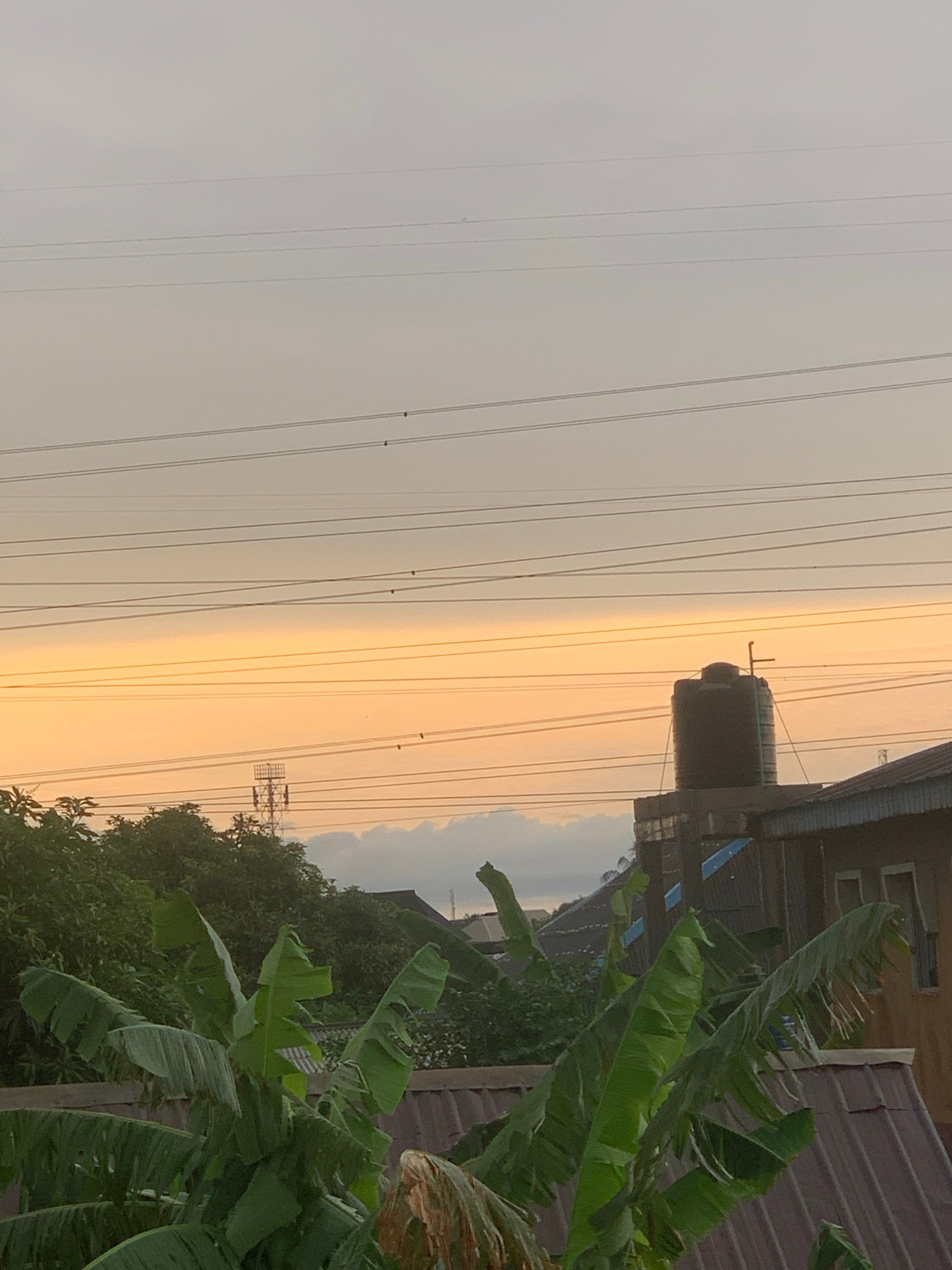 The image depicts an outdoor scene in Ikorodu, Nigeria, captured during twilight. The sky displays a gradient of light yellow to grey. Prominent are several high-tension power lines stretching acrossβ¦read more