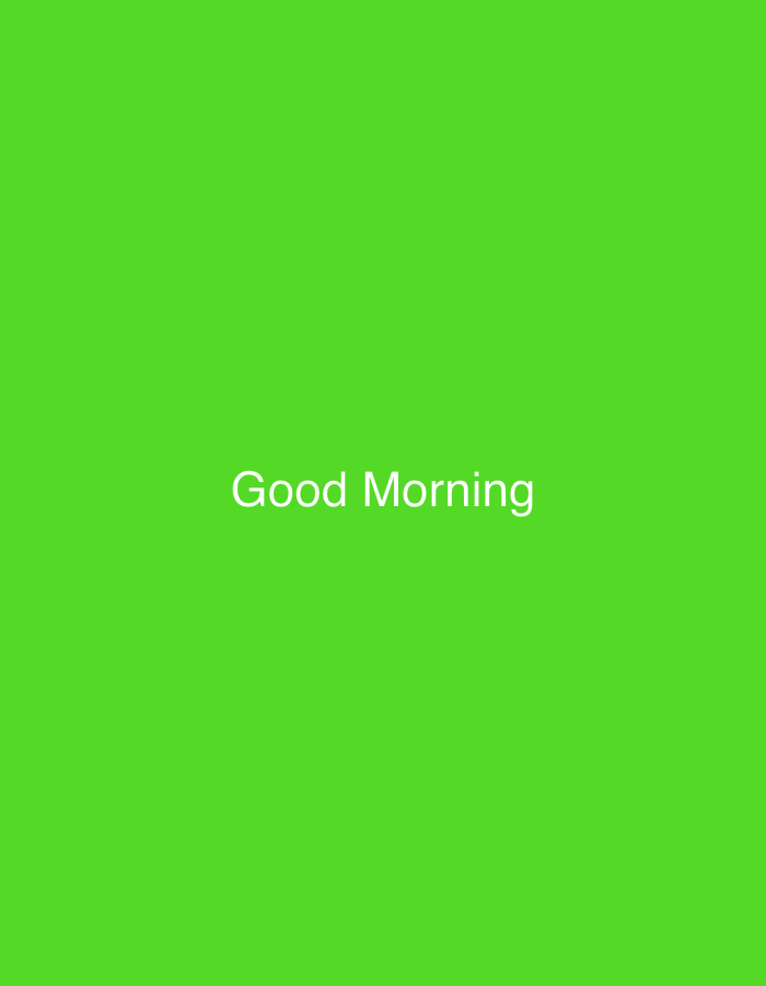 The image is a plain, solid green background with the white text "Good Morning" centered. There is no discernible location, people, subjects, objects, actions, or interactions present. The environment…read more