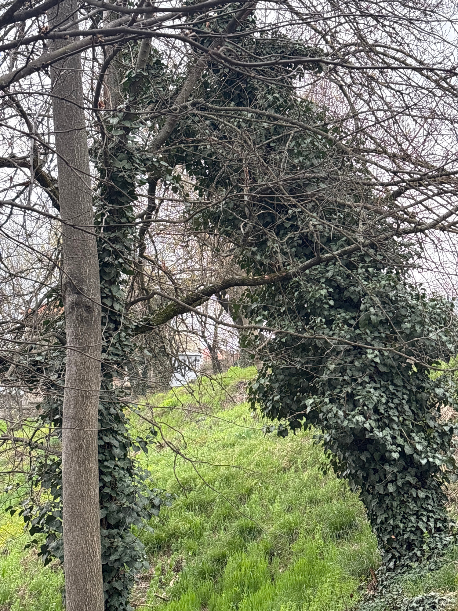 The image shows a view of a landscape with a tree in the foreground. The tree has both bare branches and some green leaves, indicating a transitional season, possibly spring or autumn. Behind the treeβ¦read more