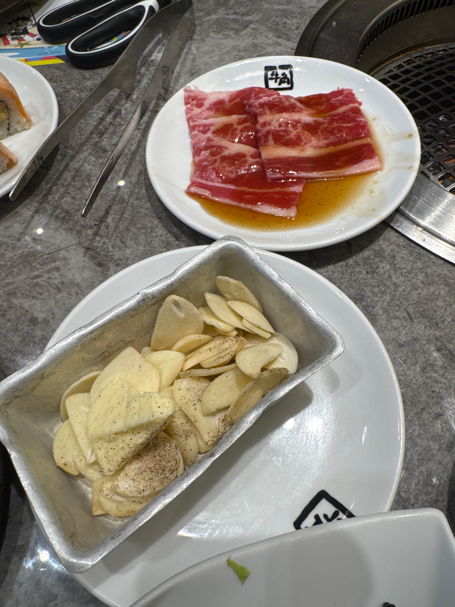 The media file captures an overhead view of a dining table setting, likely in a restaurant in Kuta Selatan, Indonesia, showcasing ingredients prepared for a meal. In the upper left, a white circular…read more