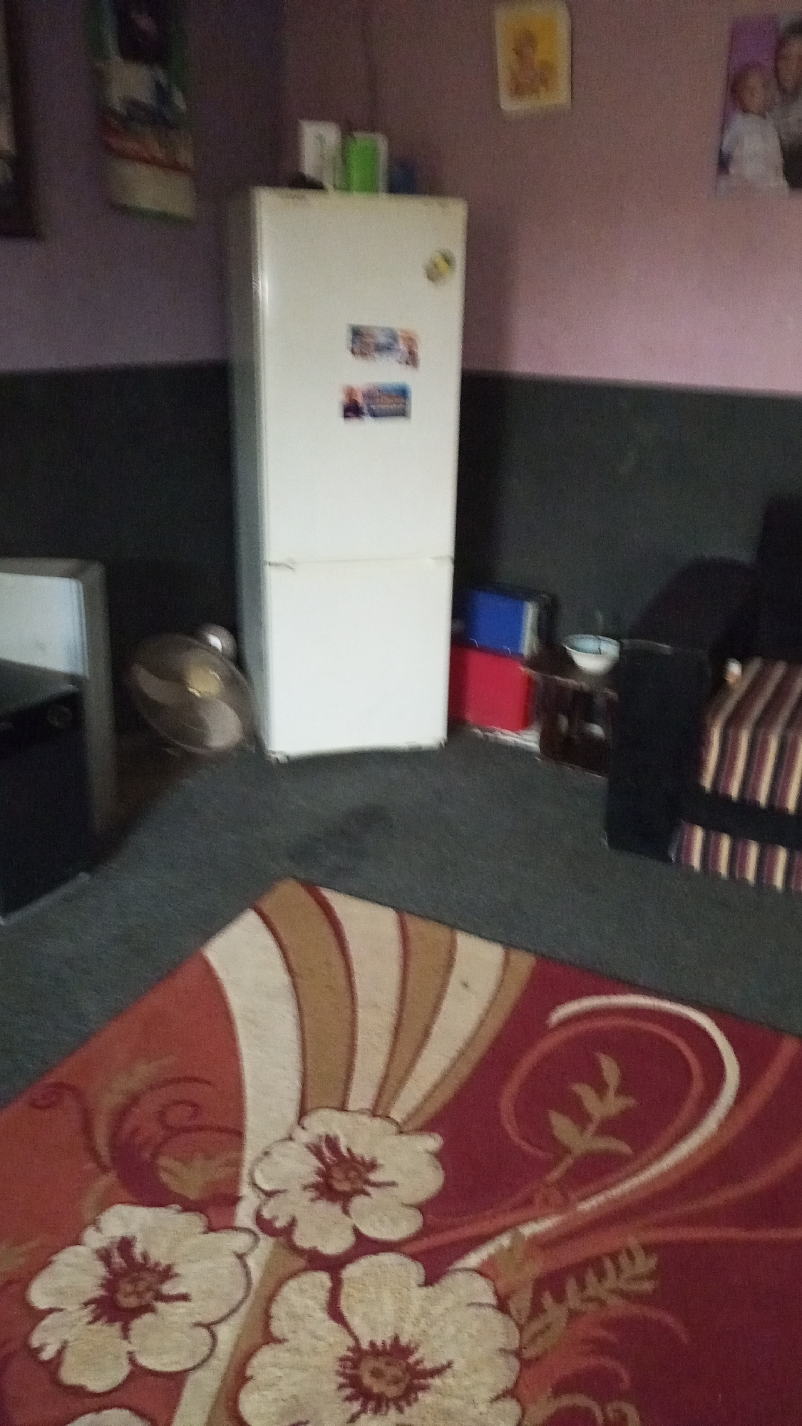 The image depicts an interior scene, potentially in Sabon Tasha, Nigeria. The foreground features a red rug with large floral patterns in beige and white. Behind the rug, the floor is covered in a dar…read more