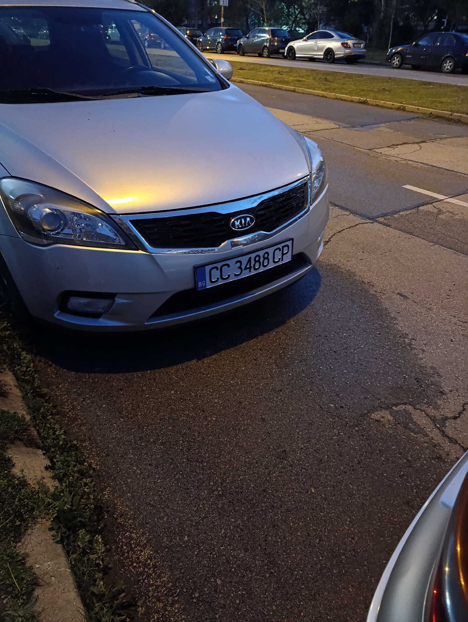 The image shows a silver Kia Cee'd parked on the side of a street. The license plate reads "CC 3488 CP" with the country code "BG" indicating it is registered in Bulgaria. The location appears to be u…read more