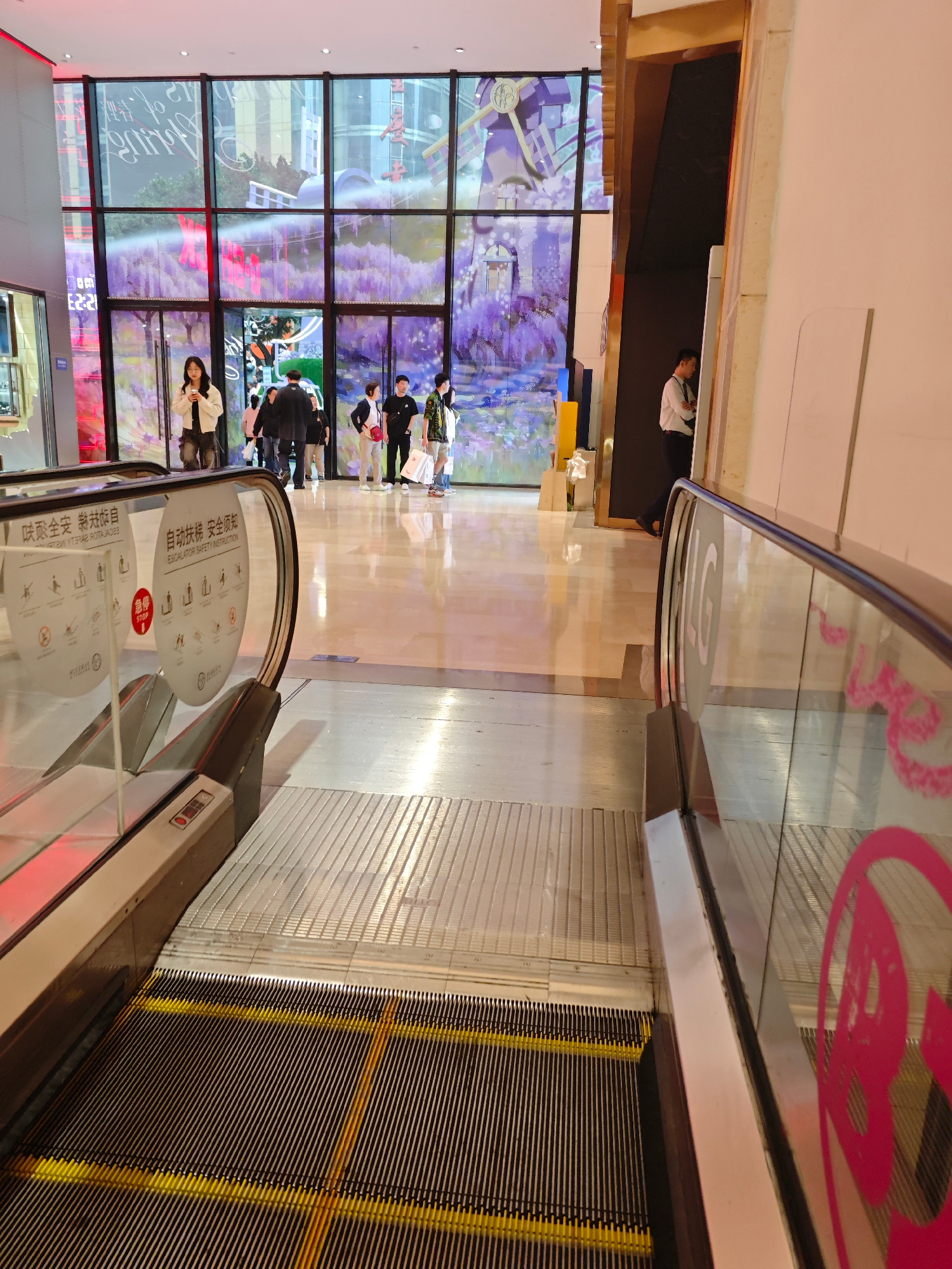 A ground-level, indoor shot depicts the interior of a building with a wide-open entrance area, most likely a shopping mall or commercial center, in Yuzhong District, China. The foreground features a n…read more