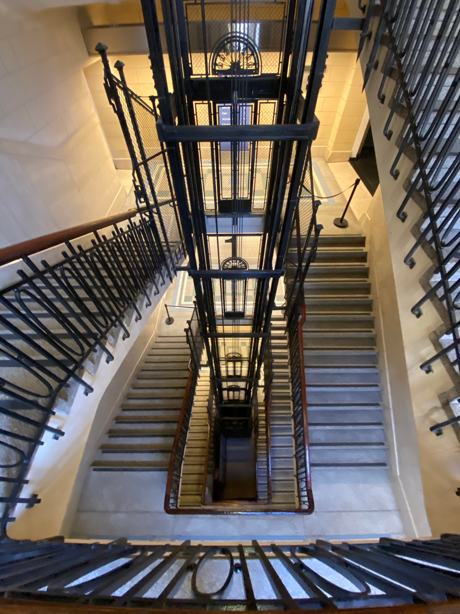 The image depicts the interior of a building in Buenos Aires, Argentina. It appears to be a multi-story building, possibly an apartment complex or office building. The viewpoint is from above, lookingβ¦read more