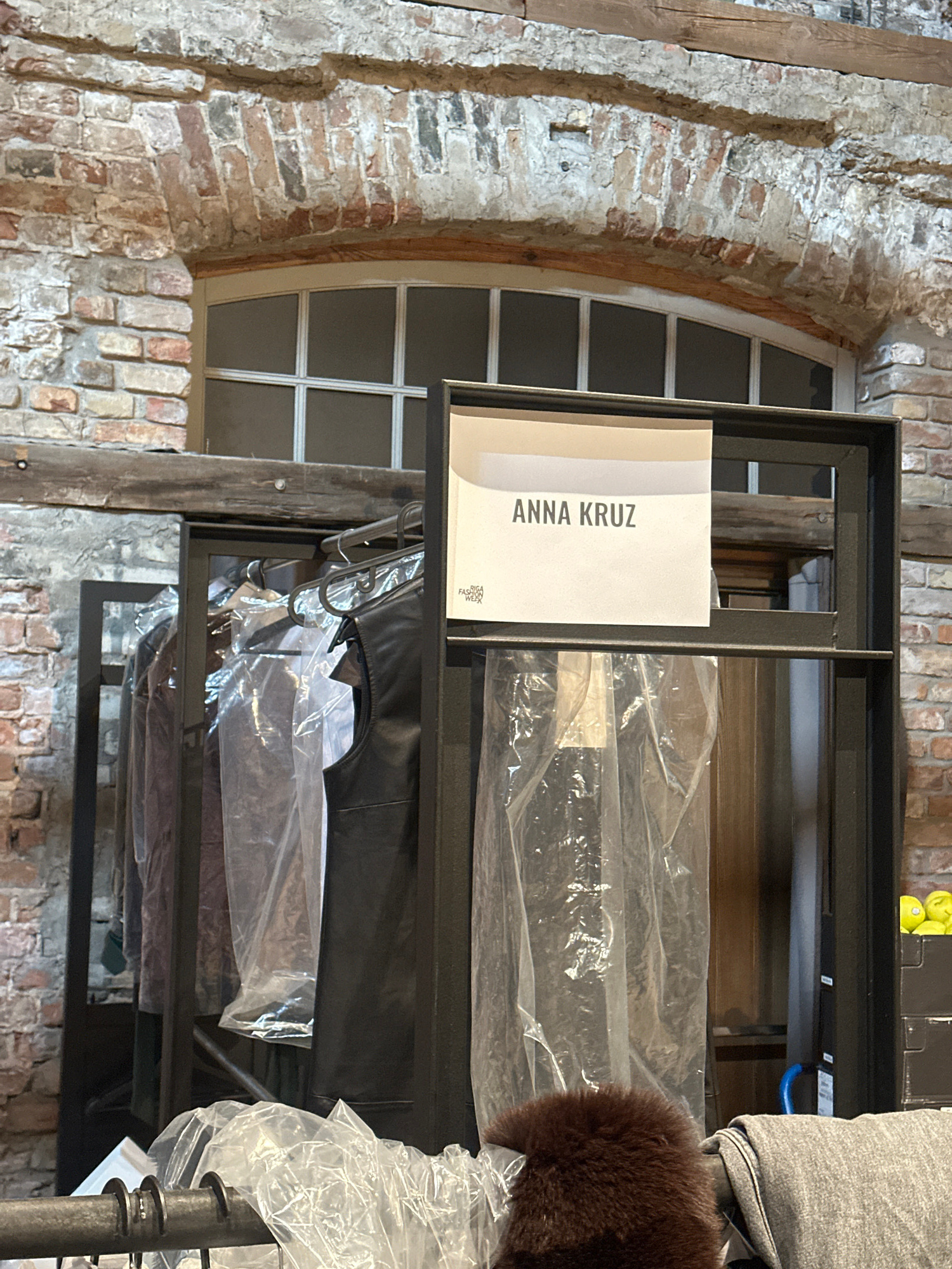 This image captures an indoor scene within what appears to be a historic or industrial building, characterized by rough, exposed brick walls and large, aged wooden beams. A prominent feature of the ba…read more