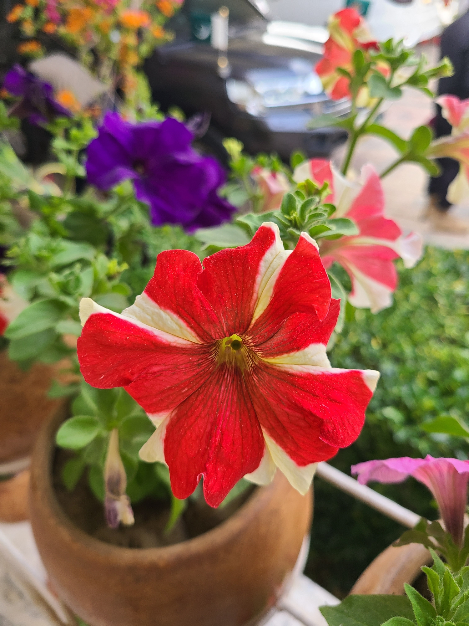 The image features a vibrant array of petunia flowers in a garden or potted arrangement, likely located in Quetta City Tehsil, Pakistan, given the prompt's location constraint. The primary subject is…read more