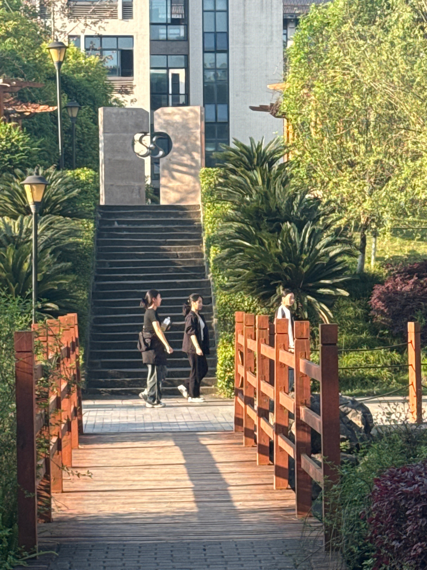 The image depicts an outdoor scene in Jiangjin, China, featuring a blend of architectural and natural elements. A building with multiple windows is visible on the left, partially obscured by trees and…read more