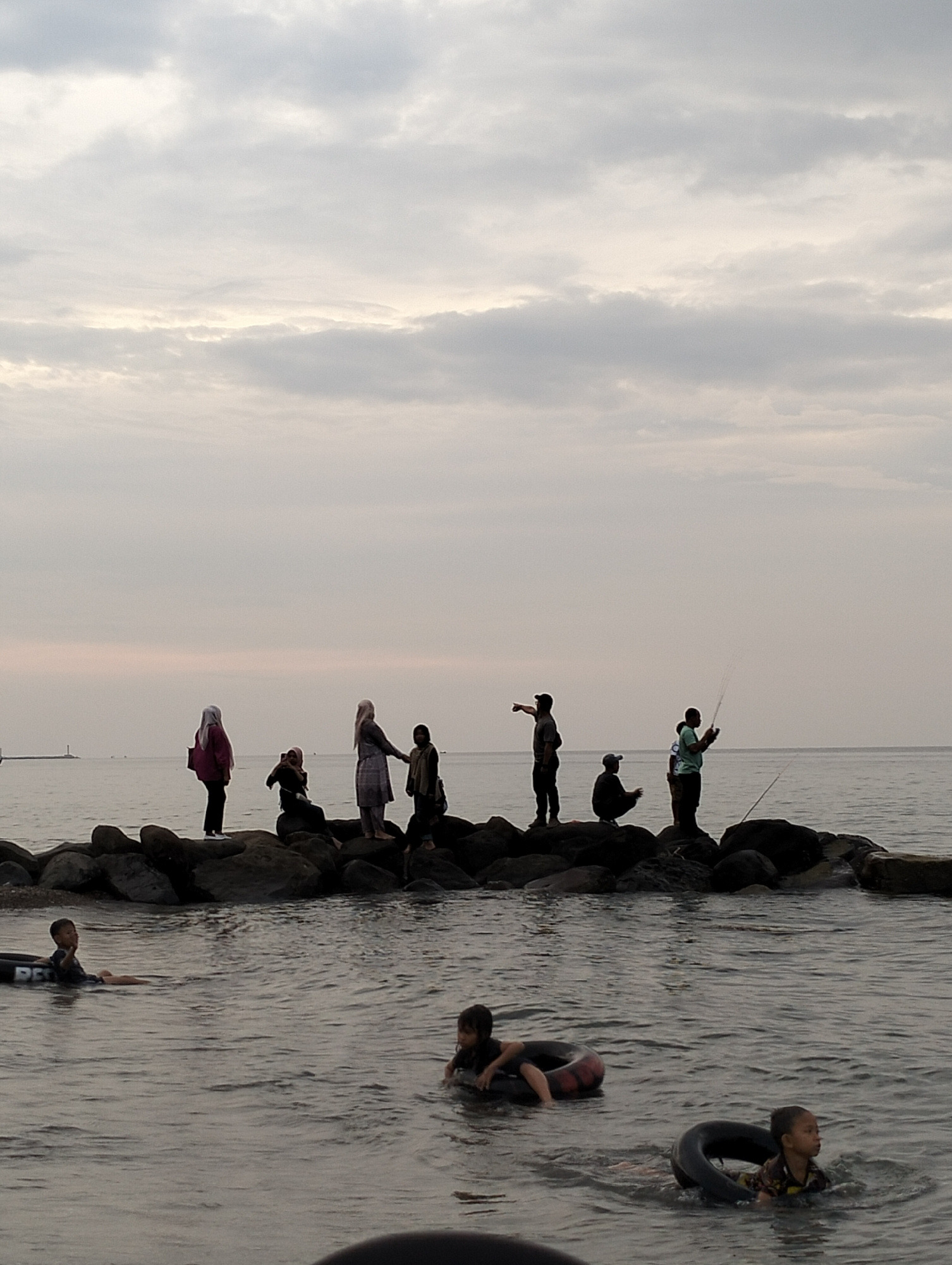 A coastal scene in Lhokseumawe, Indonesia, depicts a tranquil, overcast environment at an unspecified time, likely dawn or dusk, given the diffused light. The horizon line is visible across the calm,…read more