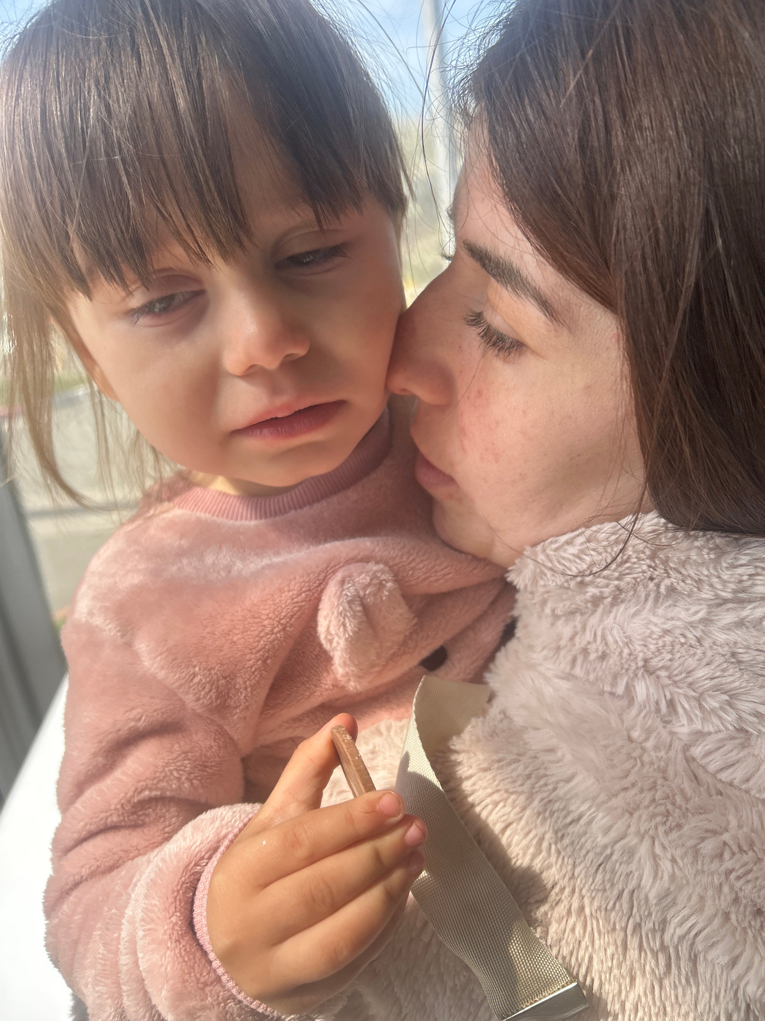 A photo shows two people, likely a young woman and a child. The woman has dark hair and closed eyes. The child, with shoulder-length hair, also has closed eyes. The woman appears to be touching the ch…read more