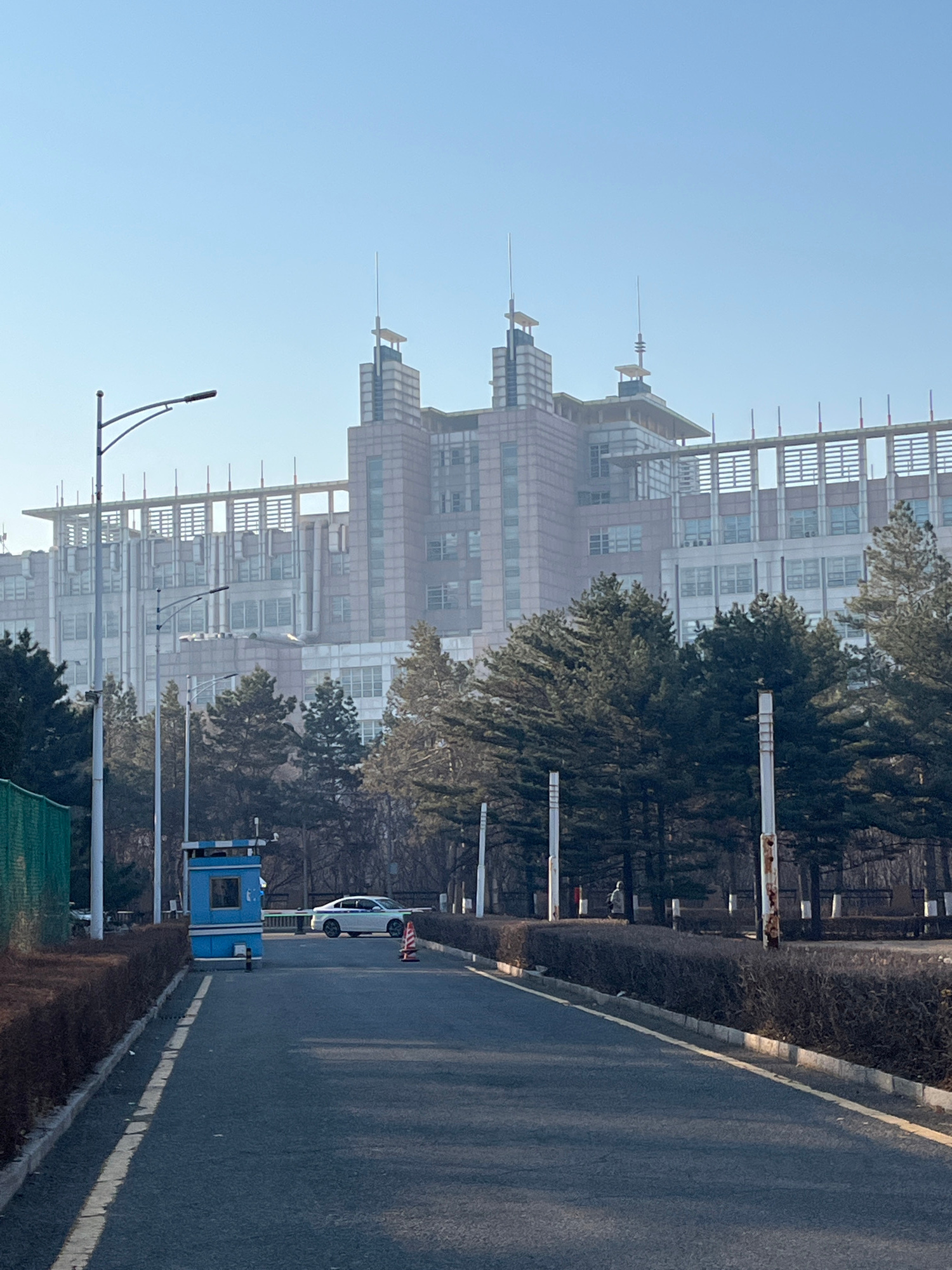 An eye-level, outdoor, medium shot reveals a street scene with buildings in the background, likely in Changchun City, China. The street, featuring a painted white line near its right edge, dominates t…read more