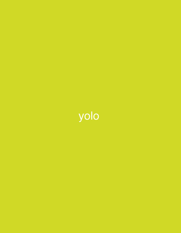 The image displays a solid, vibrant yellow-green background, closely resembling a lime green or chartreuse color. Centered horizontally and vertically on this monochromatic field is the word "yolo," w…read more