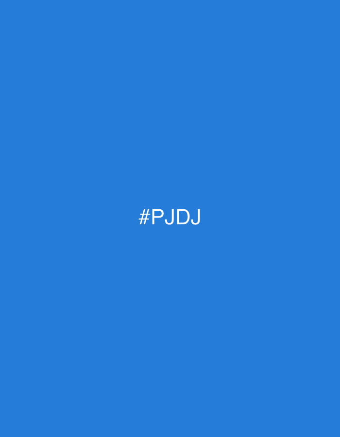 The image is a solid blue background with the text "#PJDJ" in white. There is no indication of location or city.