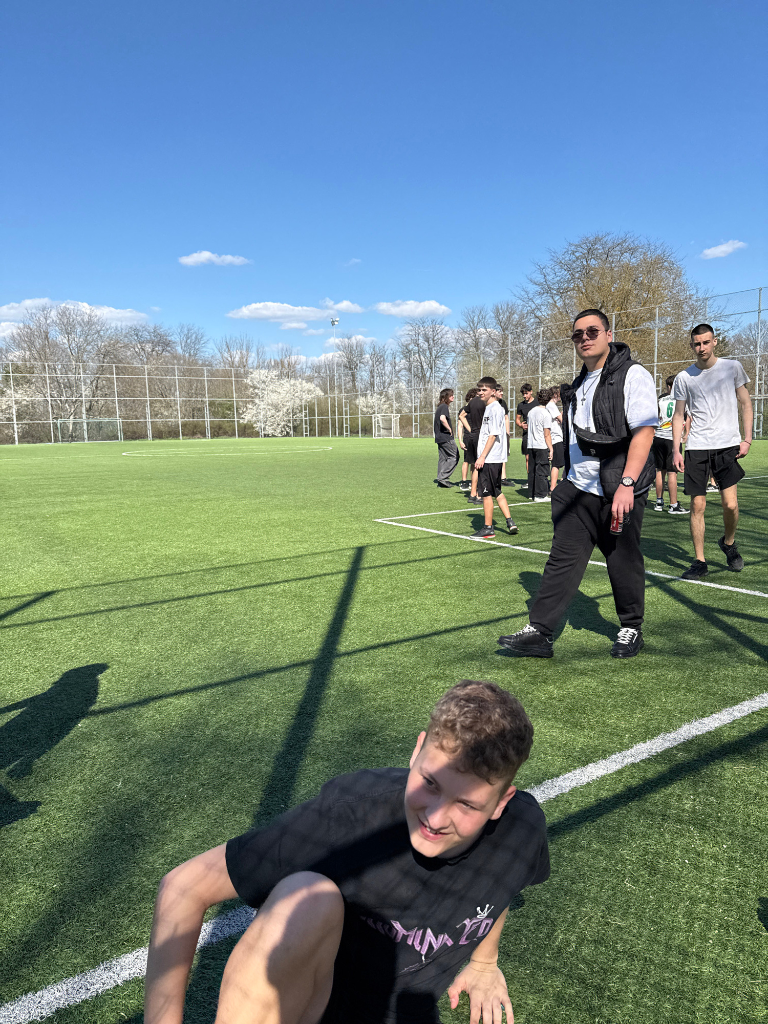 A group of young men are on a green artificial turf field, likely a sports field, on a sunny day. The location is Dobrich, Bulgaria, based on the presence of the local football club shirt on one of thβ¦read more