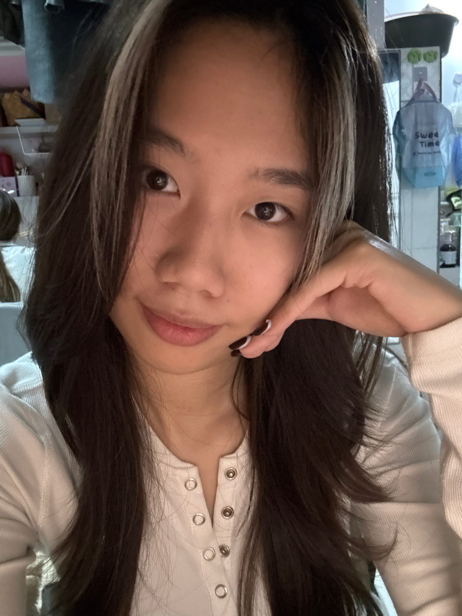 The image depicts a female subject, appearing to be of East Asian ethnicity, in an indoor setting located in Nan'an District, China. The subject is positioned facing forward, with a slight smile and d…read more
