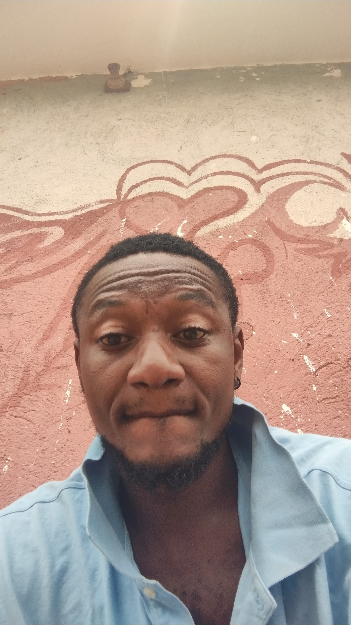 The image displays a close-up portrait of a man, rotated 90 degrees counter-clockwise from its correct orientation. The subject is an adult man with dark skin, short dark hair, and a neatly trimmed da…read more