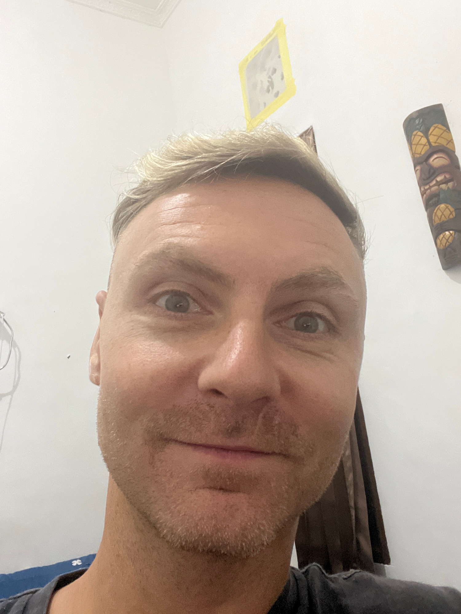 A fair-skinned man with light, short hair and light stubble looks directly at the camera in an indoor setting. He has a neutral expression with a subtle, slight smile. The background is predominantly…read more