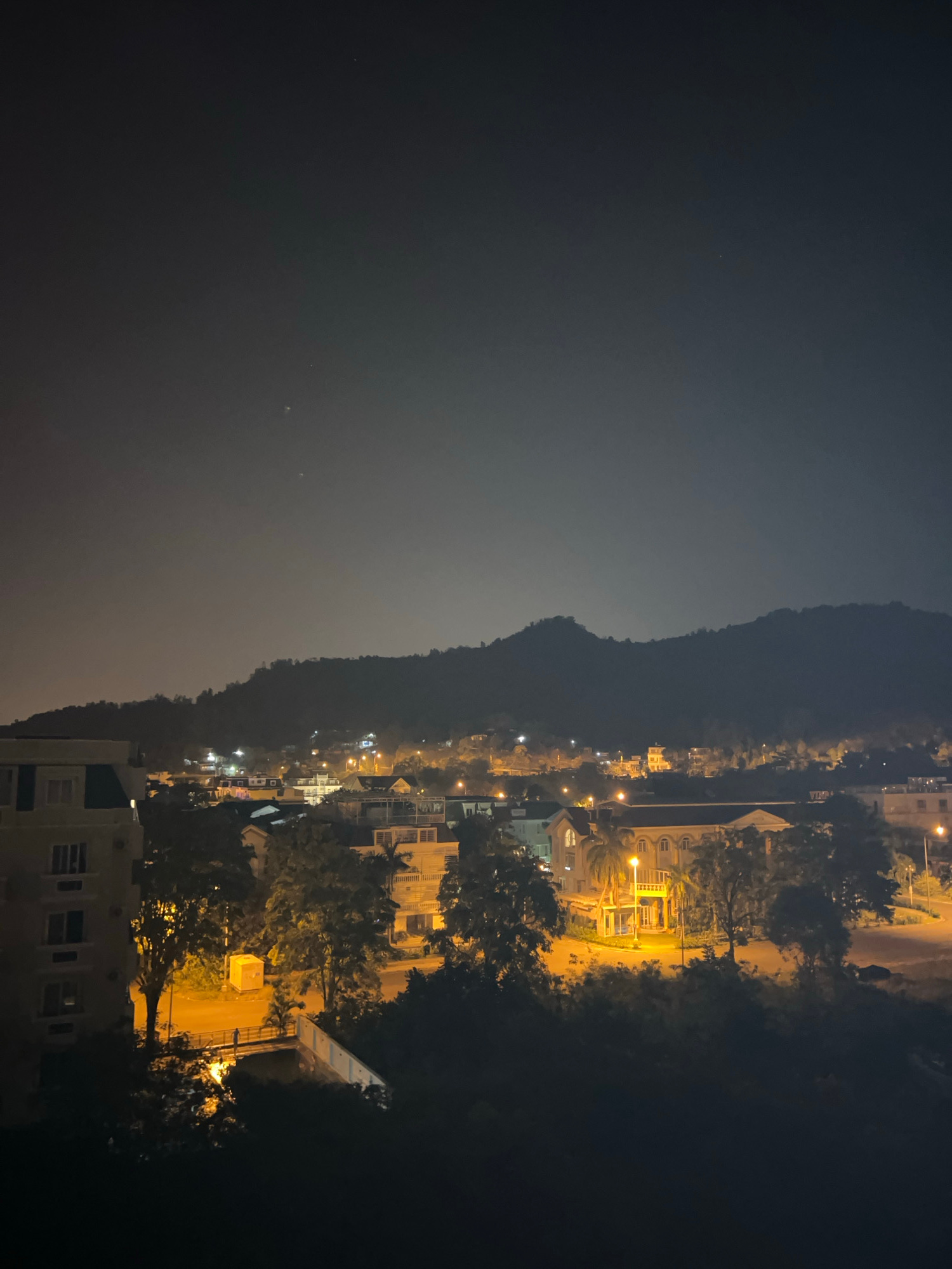 At night, a long exposure captures a coastal scene in Nha Trang, Vietnam, showing a dark body of water along the left edge and a dimly lit cityscape clinging to the base of a dark, elongated mountain…read more