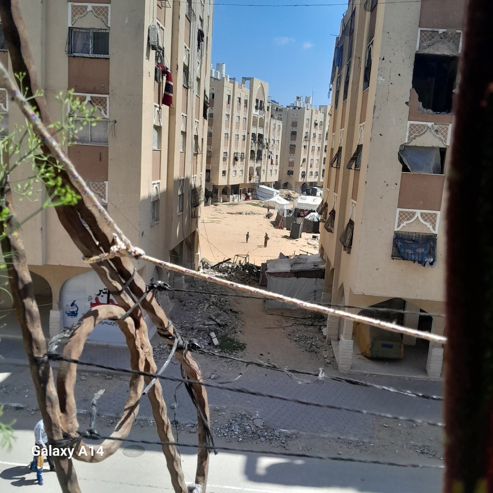 The image, taken from an elevated perspective, depicts an outdoor urban setting, identified as being in Khan Yunis, Palestinian Territory, based on visual cues. The scene is framed by what appears toβ¦read more