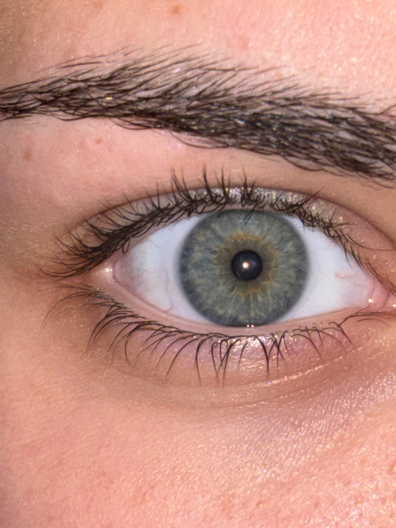 A close-up image captures a single human eye. The iris is a mix of blue, grey, and green hues with a brown-yellow center. The pupil is black and reflects a point of light. Eyelashes are dark and spars…read more