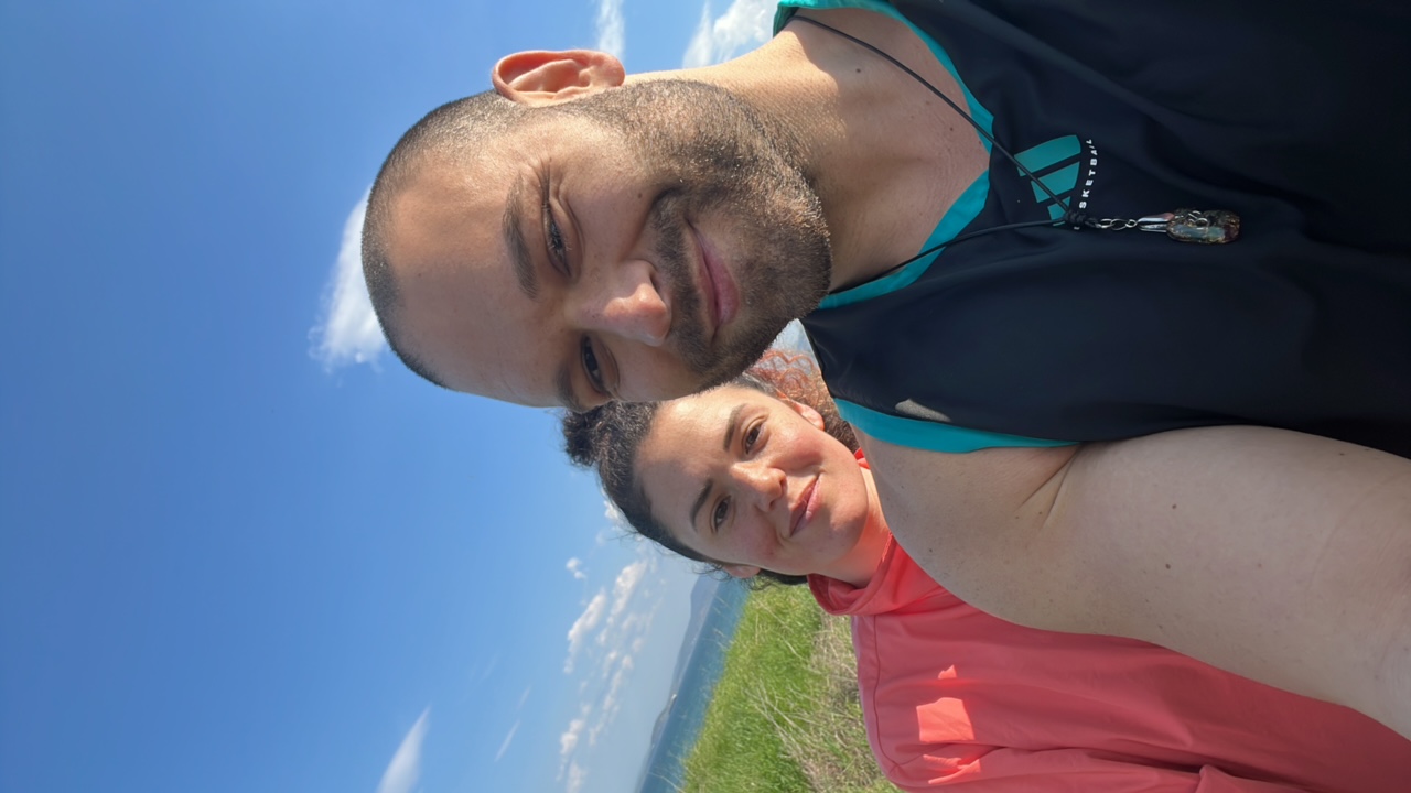 The video presents a bright, sunny daytime scene, likely captured with a drone or from an elevated position. It begins by showcasing a dirt track or road in the foreground, characterized by visible ti…read more
