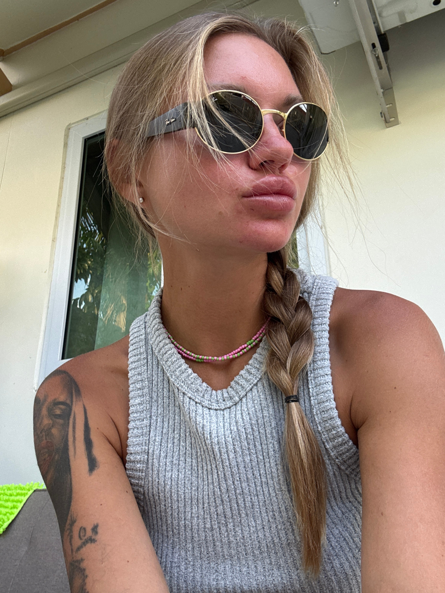 A blonde female is depicted in a close-up, chest-up portrait in Choeng Thale, Thailand. She is positioned slightly to the right of center, looking towards the upper right of the frame with her lips pu…read more