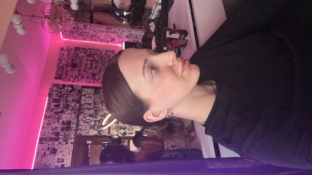 A woman with long, auburn-colored hair and fair skin is the subject of the image. She is wearing a black, furry coat or jacket. Her makeup includes lipstick and subtle eye makeup. She has light-colore…read more