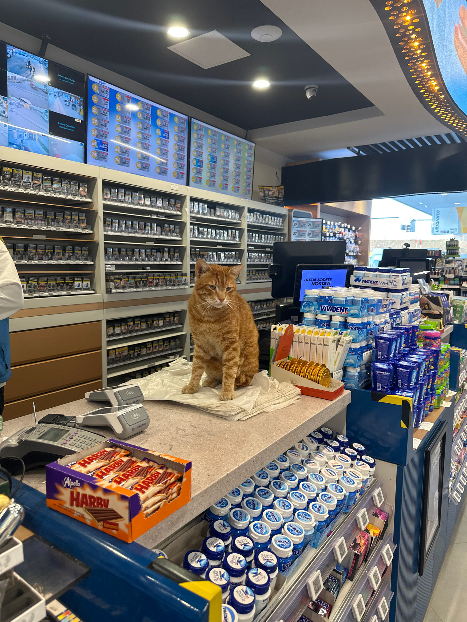 A medium, eye-level shot shows the interior of a store, likely a convenience store or market, somewhere in Gaziosmanpaşa, Turkey, based on the signs. The lighting appears to be bright and artificial.…read more