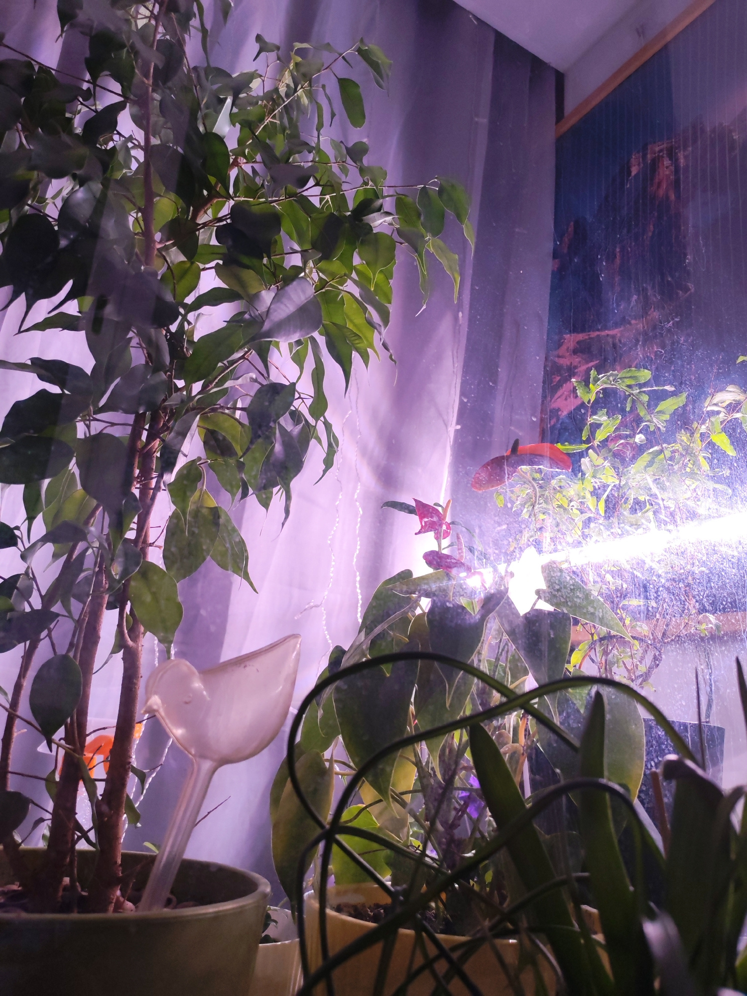 The image depicts a domestic interior, potentially a home in Izhevsk, Russia, although this cannot be conclusively determined from the image alone. The scene is dominated by indoor plants arranged in…read more