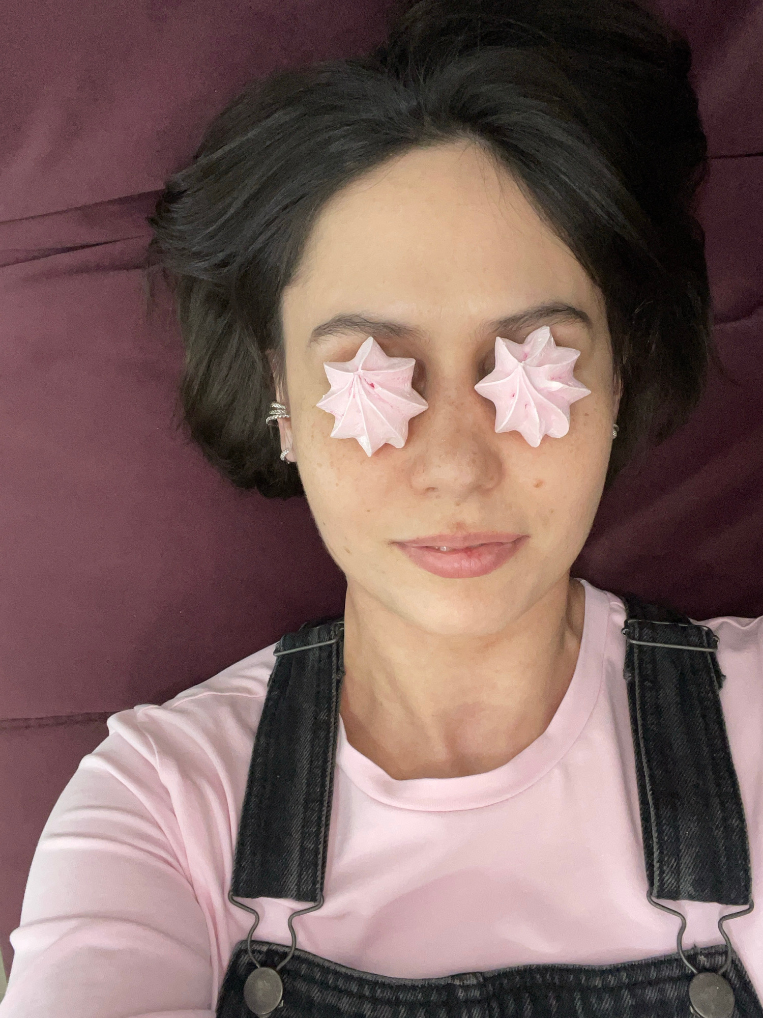 A young person with dark hair is depicted lying on a dark reddish-purple surface, possibly a bed or sofa. Their head is positioned towards the upper left of the frame, with their body extending downwa…read more