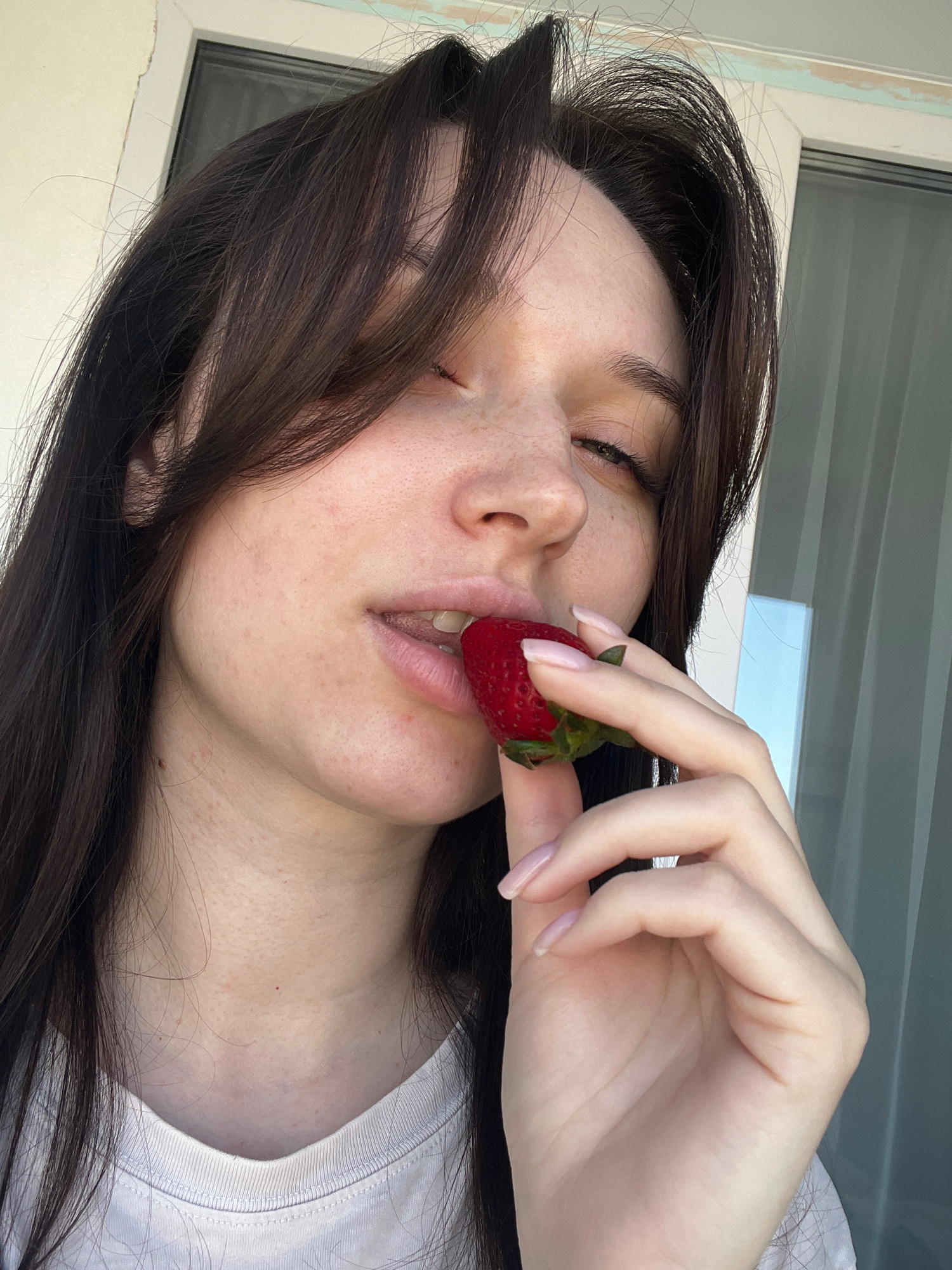 The image features a close-up portrait of a person, likely female, oriented in a way that suggests they are lying down or tilted, with their head resting against a surface. The person has long, dark b…read more