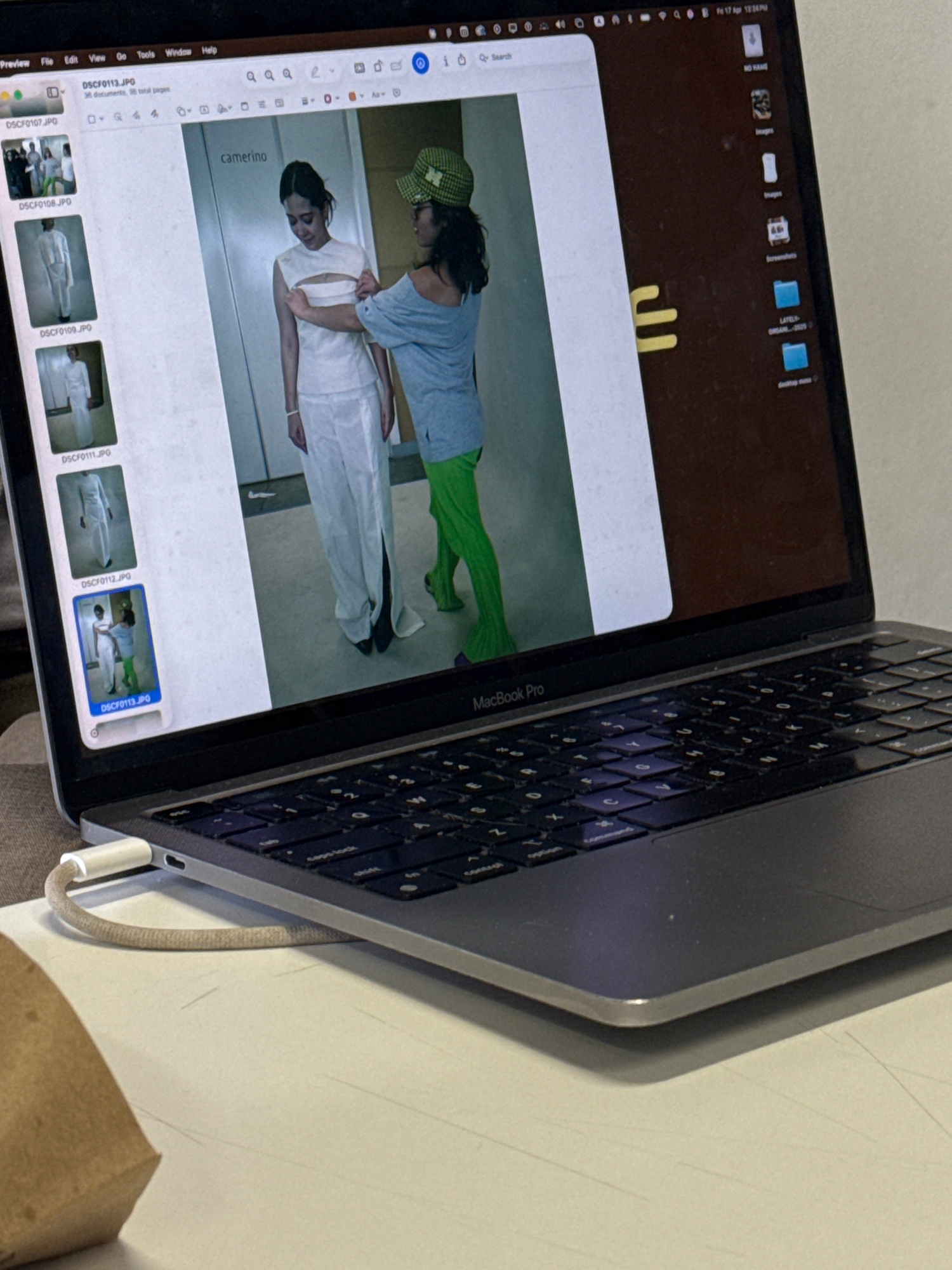 Here is a detailed description of the image: The image shows a MacBook Pro laptop displaying an image in Preview. The image appears to depict two people in a clinical or studio environment. One persoβ¦read more