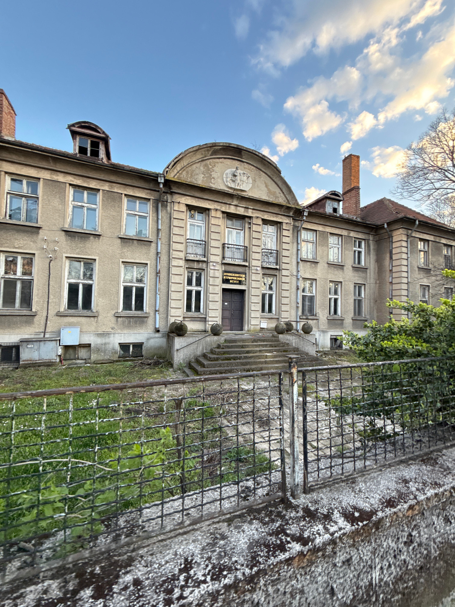 The image depicts the exterior of a four-story building in Stara Zagora, Bulgaria, known as the Regional Veterinary Medical Laboratory (Областна ветеринарномедицинска лаборатория). The building is con…read more