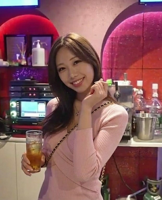 A single East Asian female, appearing to be in her mid-20s to early-30s, is centered in an indoor commercial establishment. She has long, dark brown hair and is smiling directly at the camera. She wea…read more