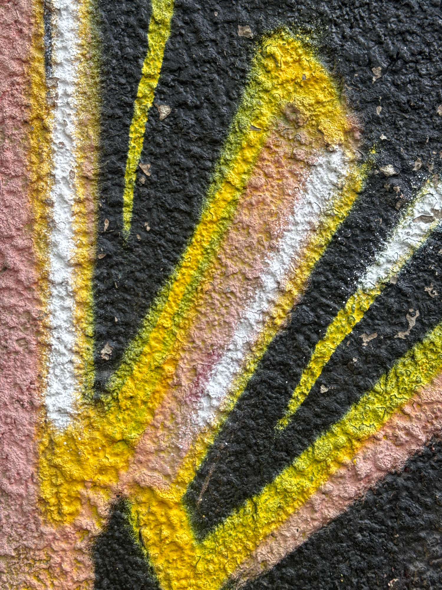 The media file presents a close-up, abstract view of a graffiti-covered wall, likely in an urban environment in Sofia, Bulgaria. The image features a highly textured surface, predominantly painted wit…read more