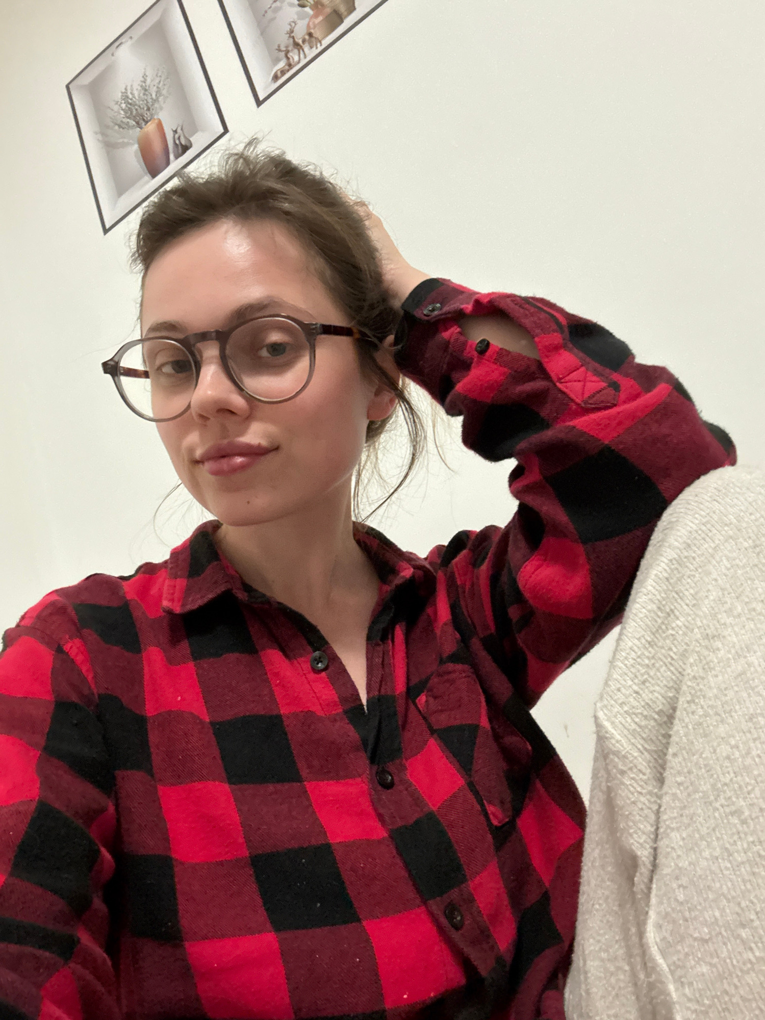 The scene is an indoor setting in Ercolano, Italy. A female individual, appearing to be in her 20s or early 30s, is centrally positioned, looking directly into the camera with a neutral to slight smil…read more