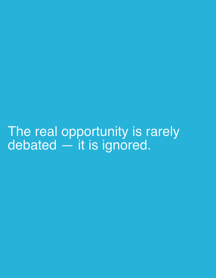 The image is a blue background with white text that reads, "The real opportunity is rarely debated — it is ignored." There is no indication of the location being Lokoja, Nigeria, or any people, subjec…read more