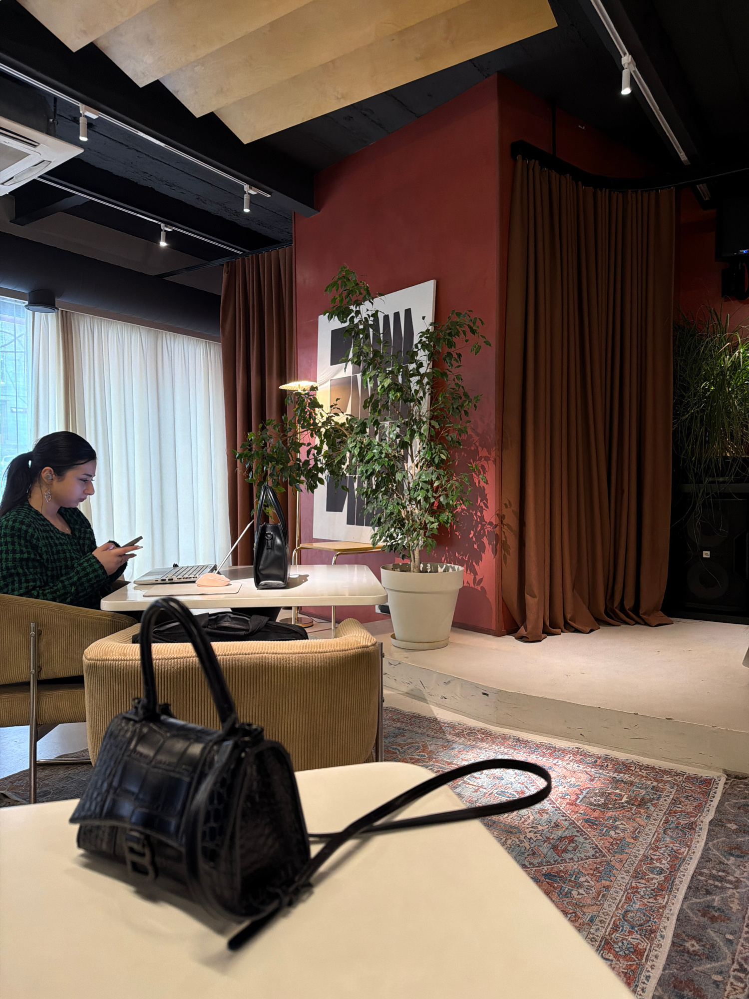 An indoor scene within a commercial establishment in Yerevan, Armenia, is captured from a slightly elevated perspective. A female with dark hair, pulled back into a ponytail, is seated in a beige ribb…read more