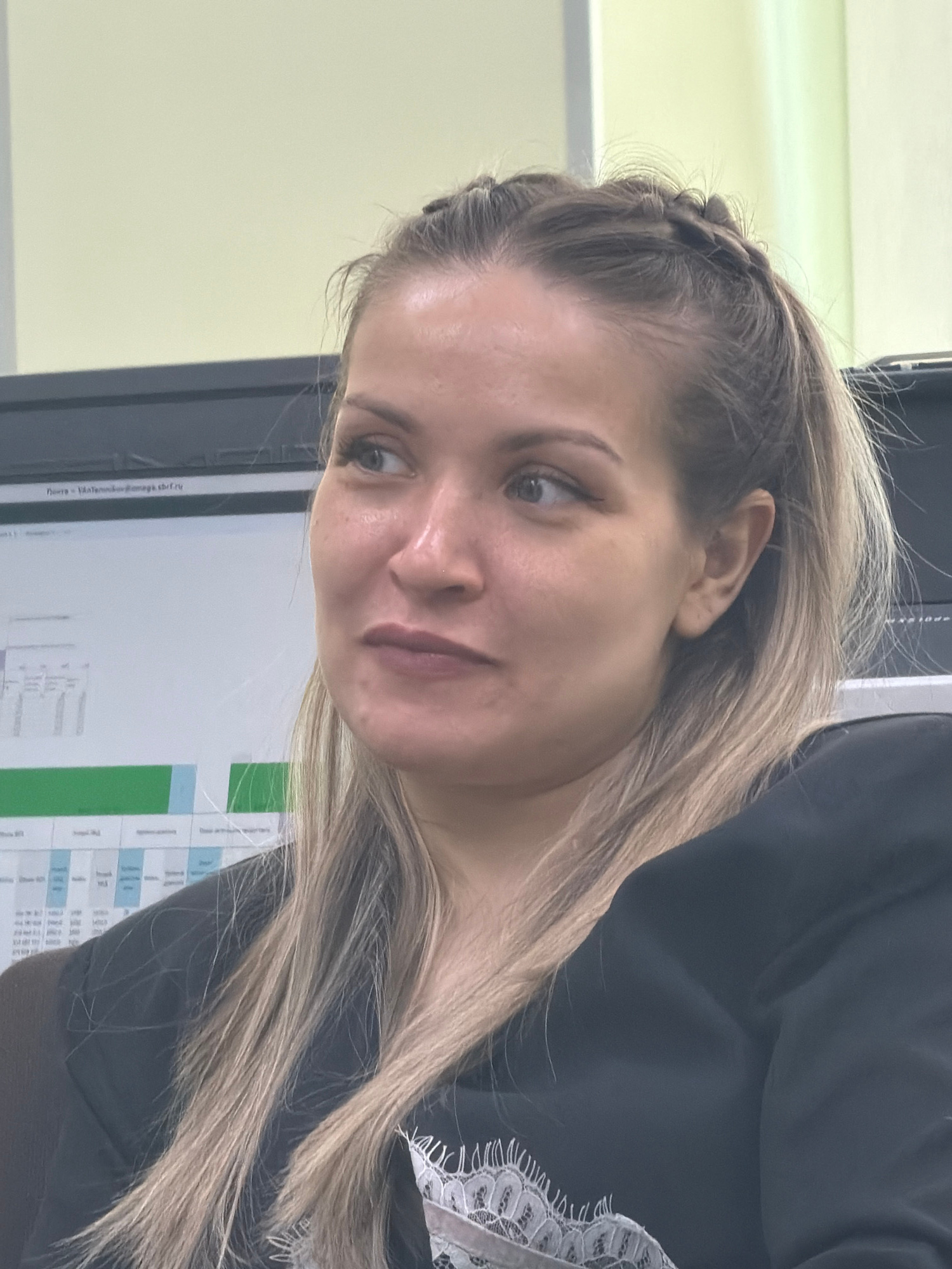 A fair-skinned woman with blonde hair styled in a braid at the front of her head, and the rest of her hair hanging down, is partially seen. She is wearing a black top with white lace detailing. In the…read more