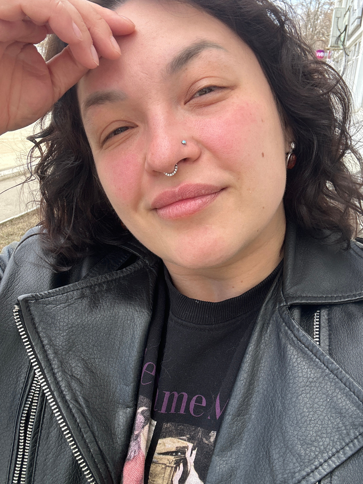 A close-up, tilted portrait captures a person with dark, wavy hair, likely outdoors in Chaikovsky, Russia. The individual, appearing to be a young adult, looks towards the viewer with a relaxed, sligh…read more