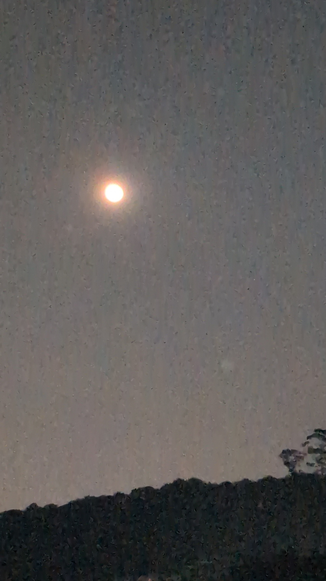 The image appears to be taken in an area affected by smoke or heavy fog, possibly in the city of Cam Ly - Da Lat, Vietnam, or similar hilly terrain, based on the rugged, dark formation on the right edge of the frame. The light source on the left looks like the sun, significantly dimmed and filtered by the atmospheric conditions. | Open Wire