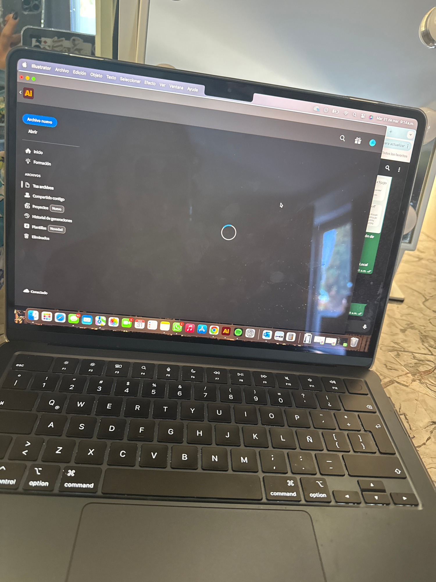 Here is a detailed description of the image: **Scene:** Close-up view of a dark-colored Apple MacBook laptop, with the screen open and the keyboard visible. The laptop appears to be on a surface with…read more